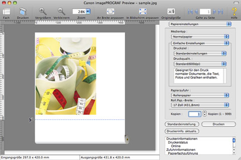 | Sie können das Druckbild im Vorschaufenster überprüfen. |